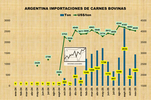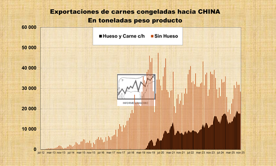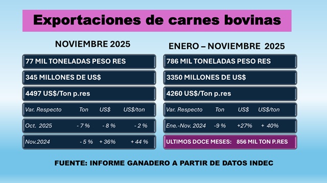 Exportaciones de carnes bovinas enfriadas y congeladas. Acumuladas a Noviembre 2025
