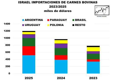Datos Oficina de Estadísticas de Israel. Importaciones de carnes enfriadas y congeladas. Actualización Diciembre 2025
