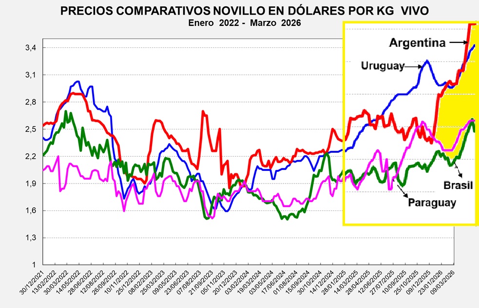 (*) Los precios para nuestro país fueron calculados sobre la base del tipo de cambio que perciben los exportadores de carnes bovinas.