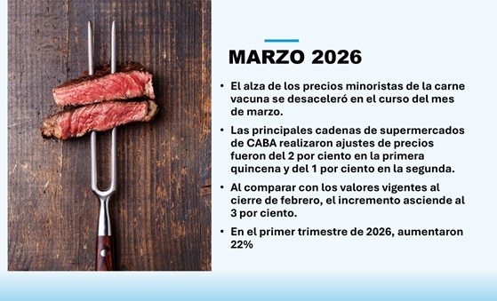 De acuerdo al relevamiento de precios que INFORME GANADERO realiza semanalmente la tendencia descendente en el aumento de precios de la carne vacuna que se observó en la segunda quincena de febrero se mantuvo en marzo .