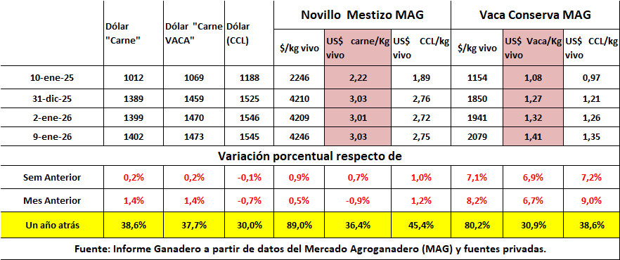 En el MAG, con una mayor oferta después de dos semanas atípicas, se registraron alzas de precios, especialmente en Vacas Conserva, que recuperaron terreno.