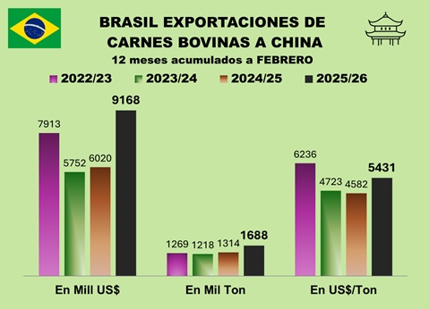 Brasil: Exportaciones de carnes bovinas a CHINA - 2026