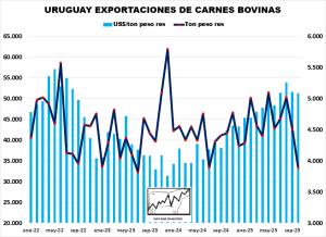 Uruguay Exportaciones de Carnes Bovinas Datos INAC Enero Agosto 2025