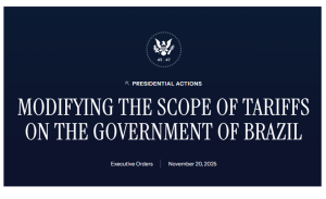 Orden Ejecutiva 20/11/2025 Elimina arancel adicional sobre importaciones Brasil, entre ellas carnes bovinas