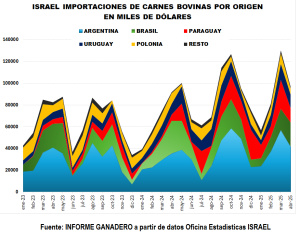 Datos Oficina Estadísticas Israel Importaciones carnes bovinas Agosto 2025