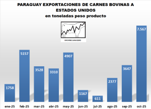 Exportaciones de carnes bovinas enfriadas y congeladas Octubre 2025 - SENACSA