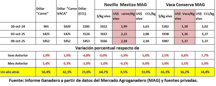 En el MAG, se mantuvo el valor del Novillo y la Vaca conserva siguió en ascenso, para estar 16 por ciento por encima de su precio en dólares en 2024.