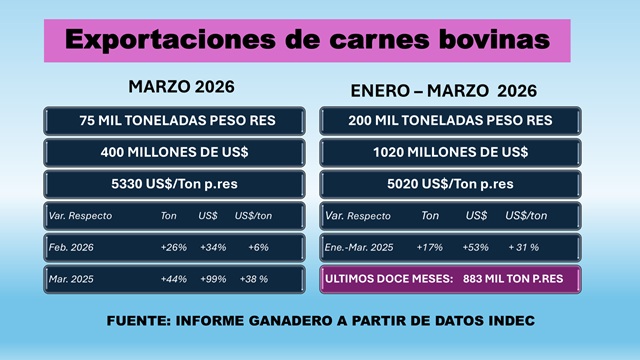 Exportaciones de carnes bovinas enfriadas y congeladas. Menudencias. En volumen y Valor Datos INDEC.