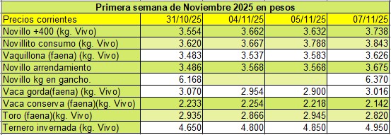 Valores obtenidos durante la primera semana de noviembre 2025.