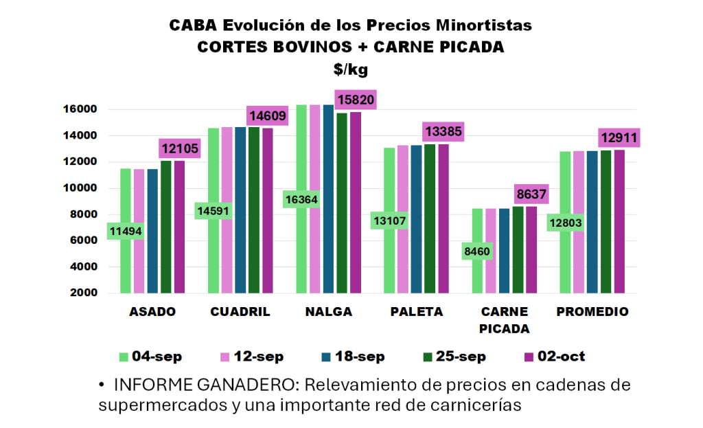 En el curso del mes de setiembre, hubo aumentos en los cortes bovinos relevados, con la excepción de la Nalga. Las subas se concentraron en la segunda mitad de setiembre.