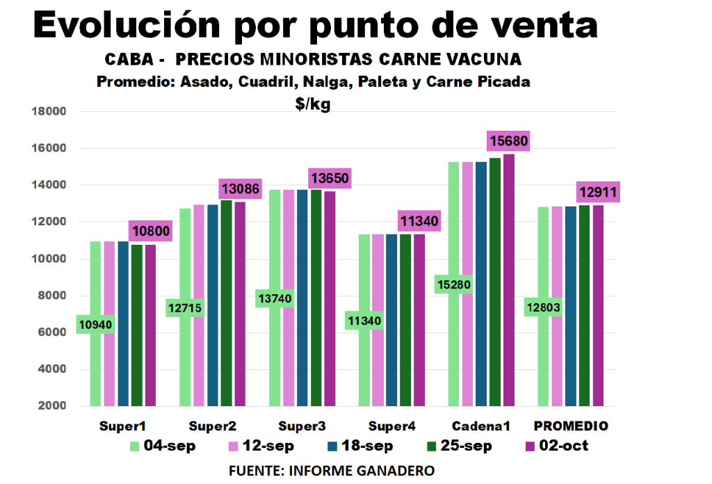 Al comparar el promedio de precios al inicio de octubre con los vigentes al comienzo del mes precedente se advierte un incremento del 1%.