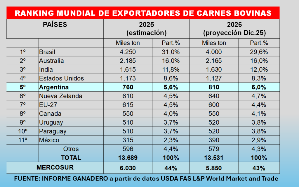 Fuente. Informe Ganadero a partir de datos USDA - (Livestock and Poultry - World Markets and Trade – December 2025)