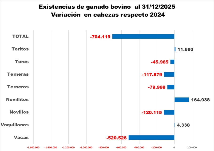 Existencias de ganado vacuno al 31/12/2025
