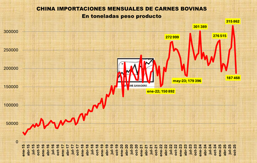 Exportaciones de carnes bovinas enfriadas y congeladas. Acumuladas a Noviembre 2025