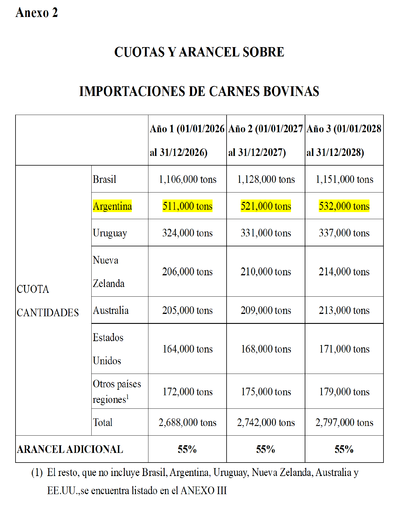 CHINA Cuotas de importación de Carnes Bovinas. 2026/2028