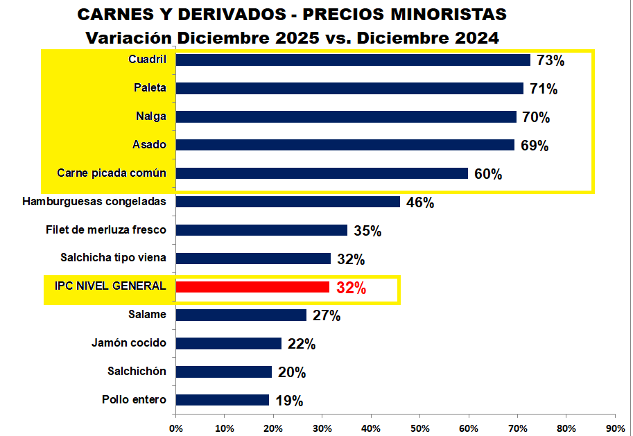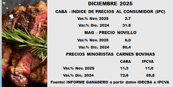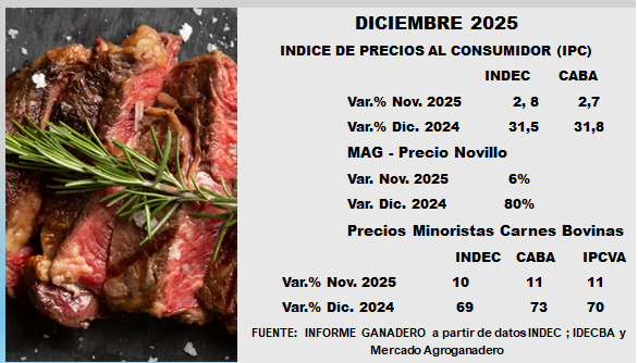 Evolución mensual año 2025. Datos INDEC e IPCVA y MAG