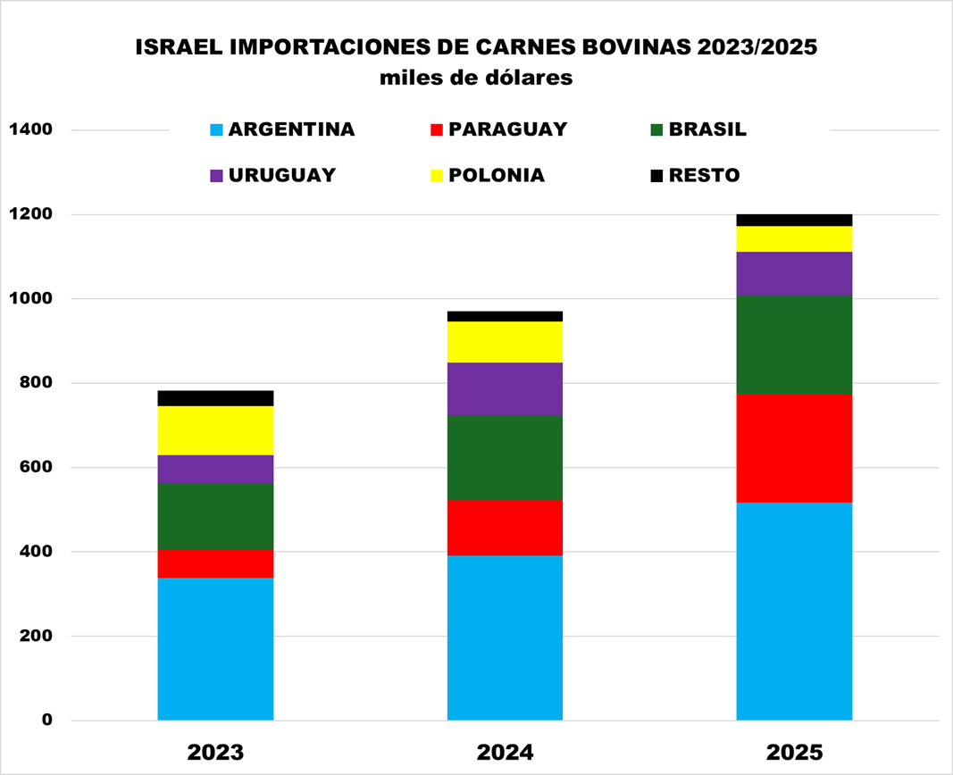 Datos Oficina de Estadísticas de Israel. Importaciones de carnes enfriadas y congeladas. Actualización Diciembre 2025