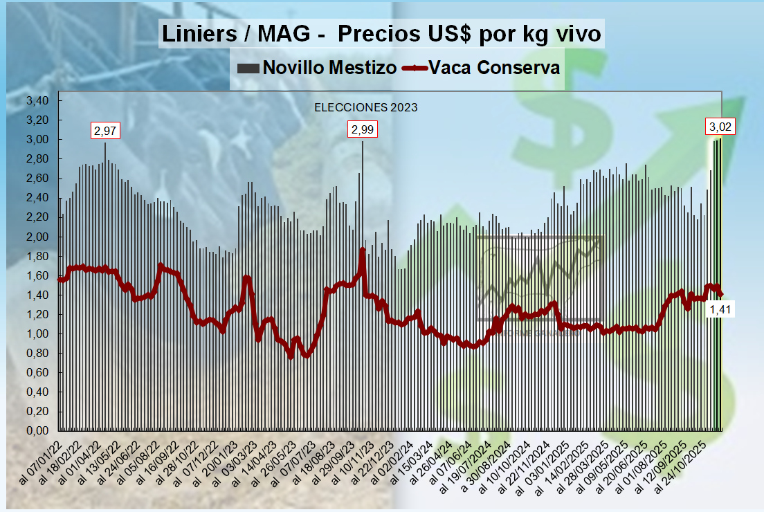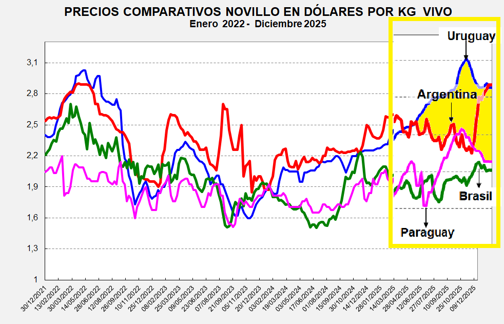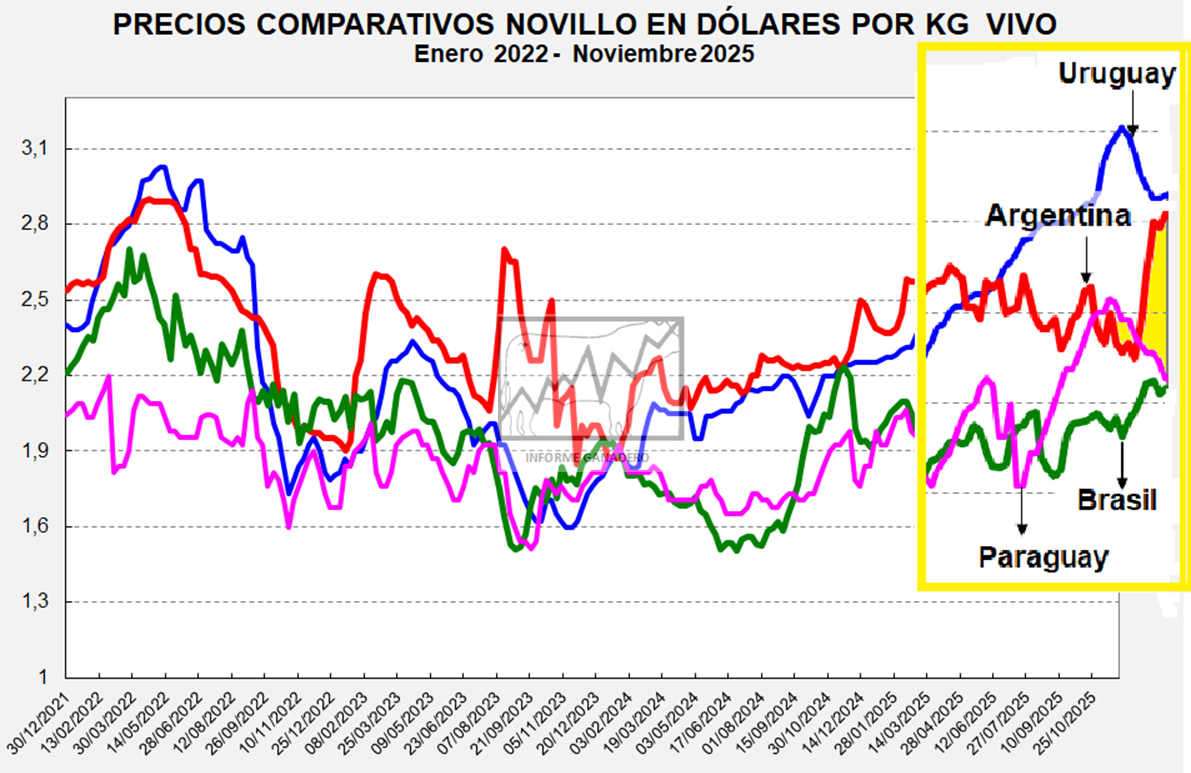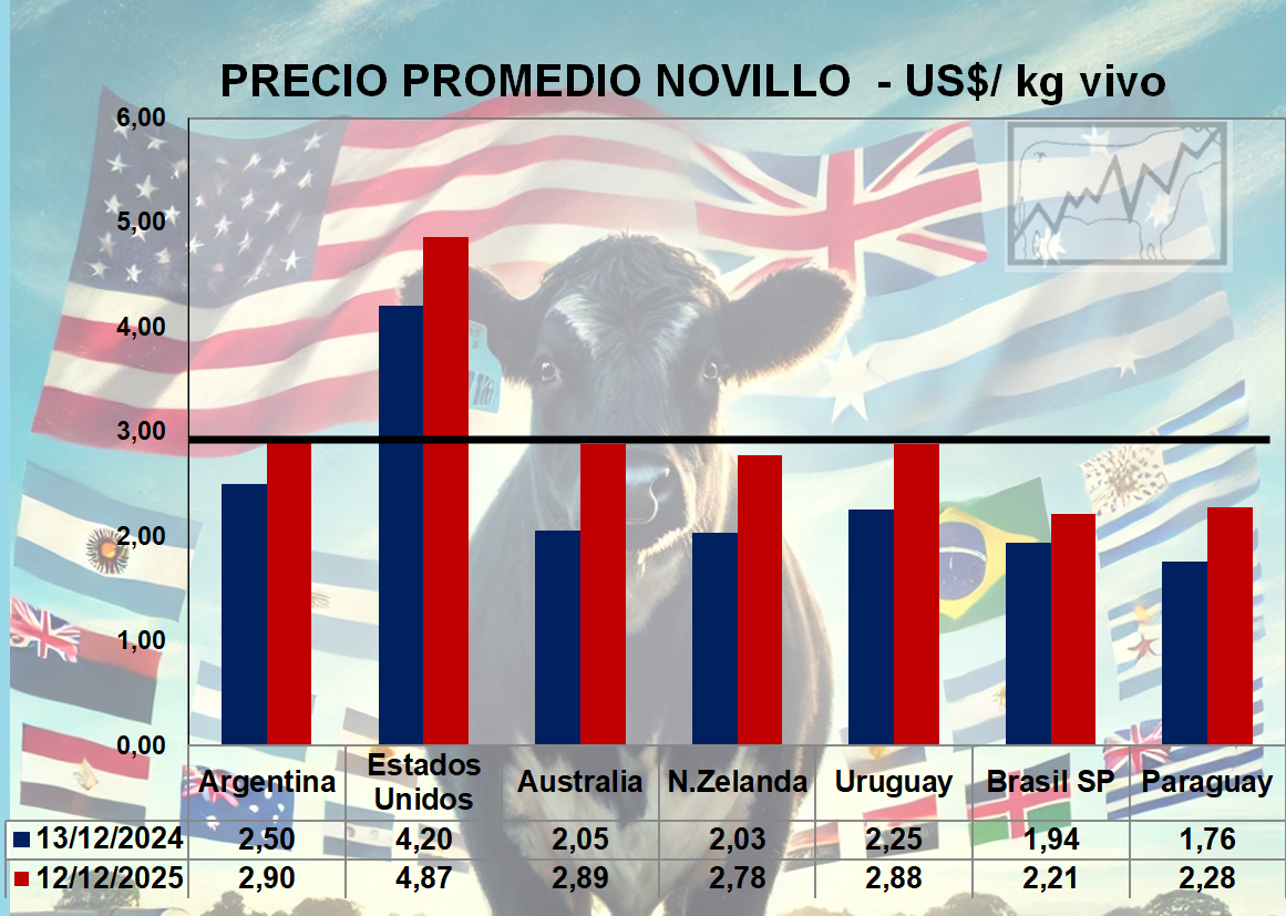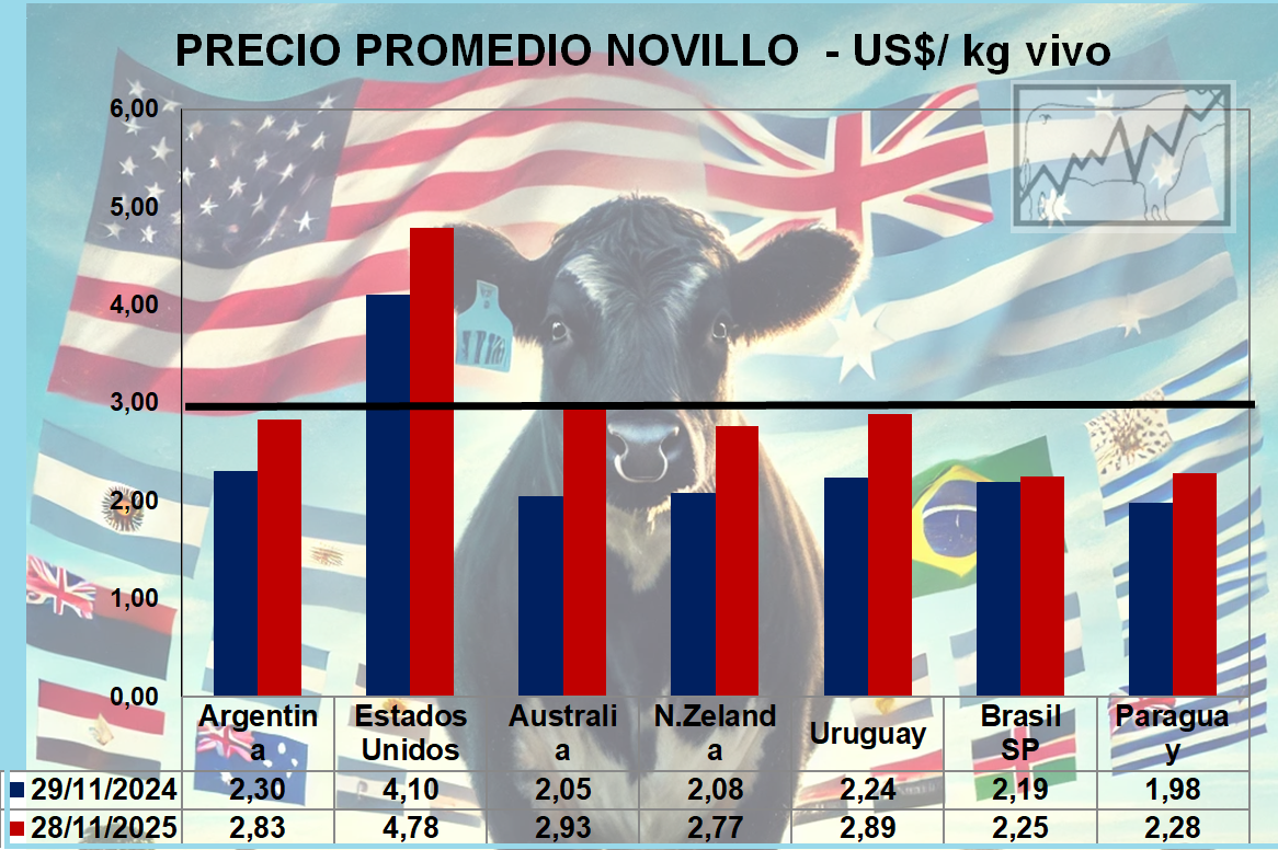 Precios Comparativos en US$ Novillos - Vacas en Argentina, Brasil, Uruguay, Paraguay, Australia, Nueva Zelanda y Estados Unidos