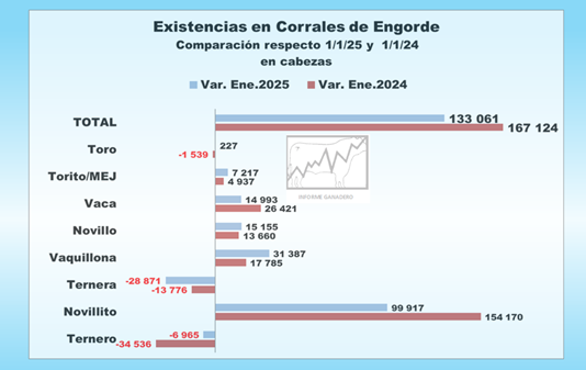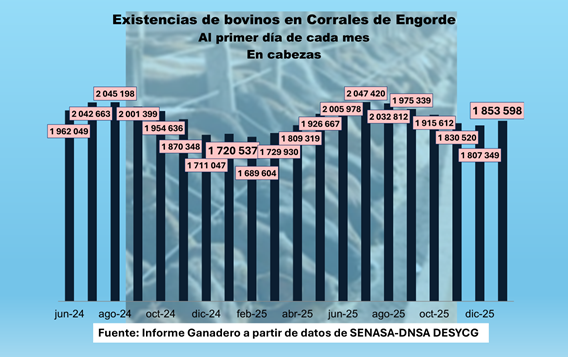 Existencias en corrales de engorde. Variación. Indice de reposición. Distribución por provincia. Datos SENASA SIGSA