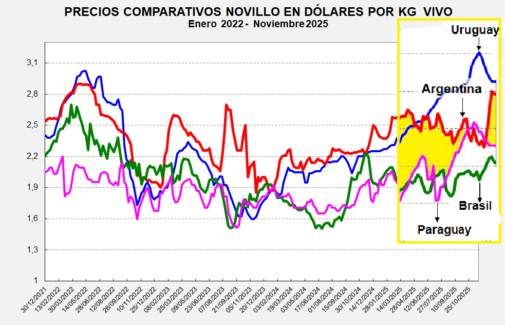 Precios Comparativos en US$ Novillos - Vacas al 07/11/2025