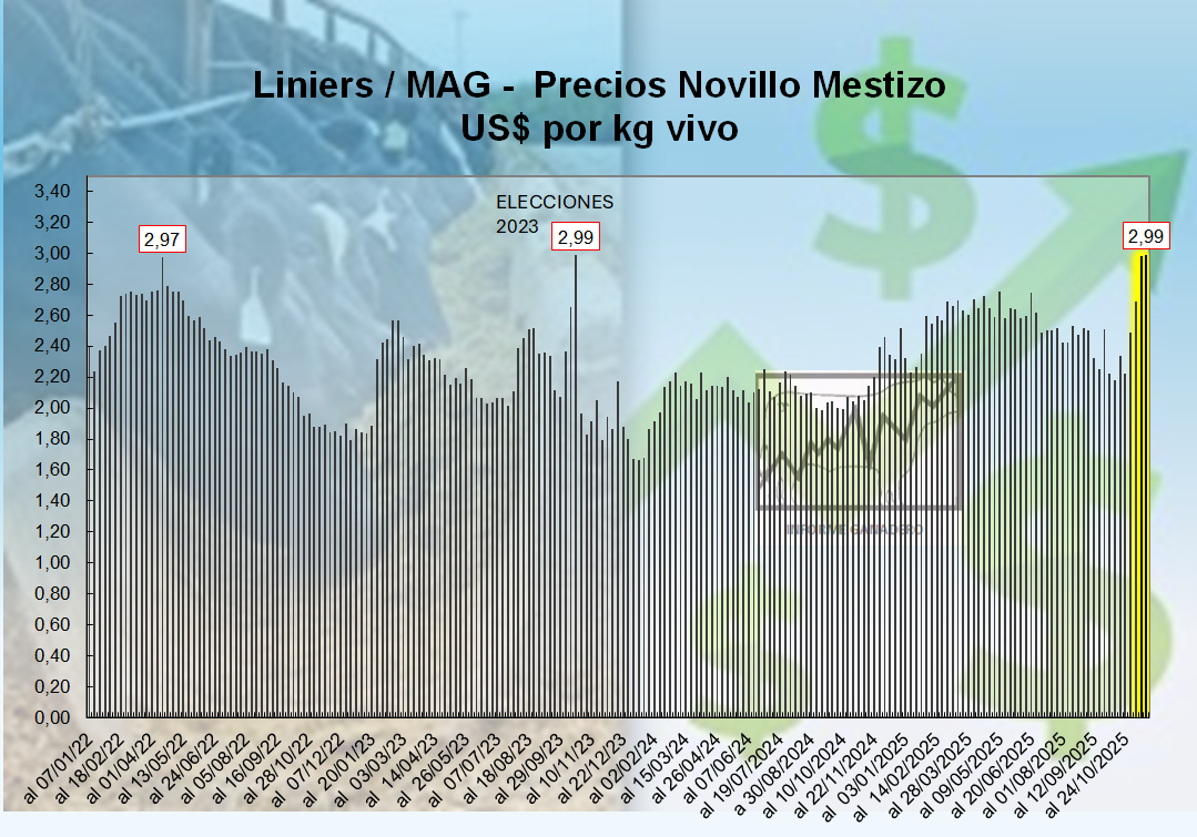 Novillo firme ¡3 US$ por kg vivo!